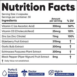 Immuneti – Advanced Immune Defense, 6-in-1 Powerful Blend of Vitamin C, Vitamin D3, Zinc, Elderberries, Garlic Bulb, Echinacea – Supports Overall Health, Provides Vital Nutrients & Antioxidants